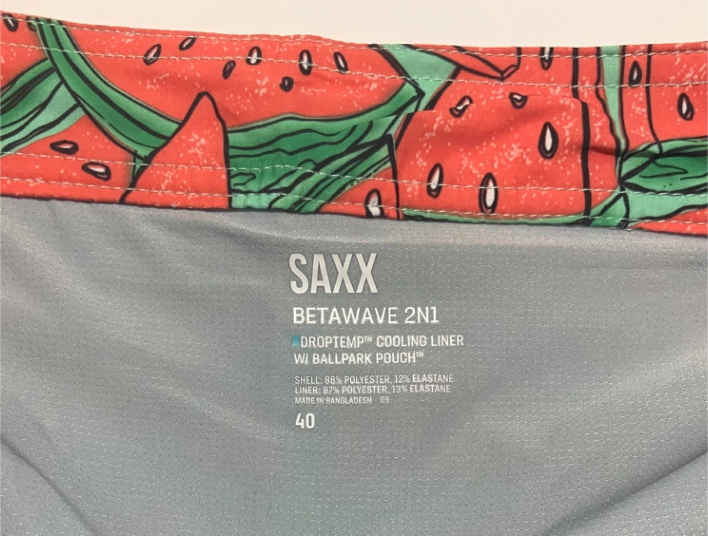 These SAXX Betawave 2N1 Boardie shorts are in excellent condition and feature a fun watermelon print! They're a size 40 and have a 17" length.