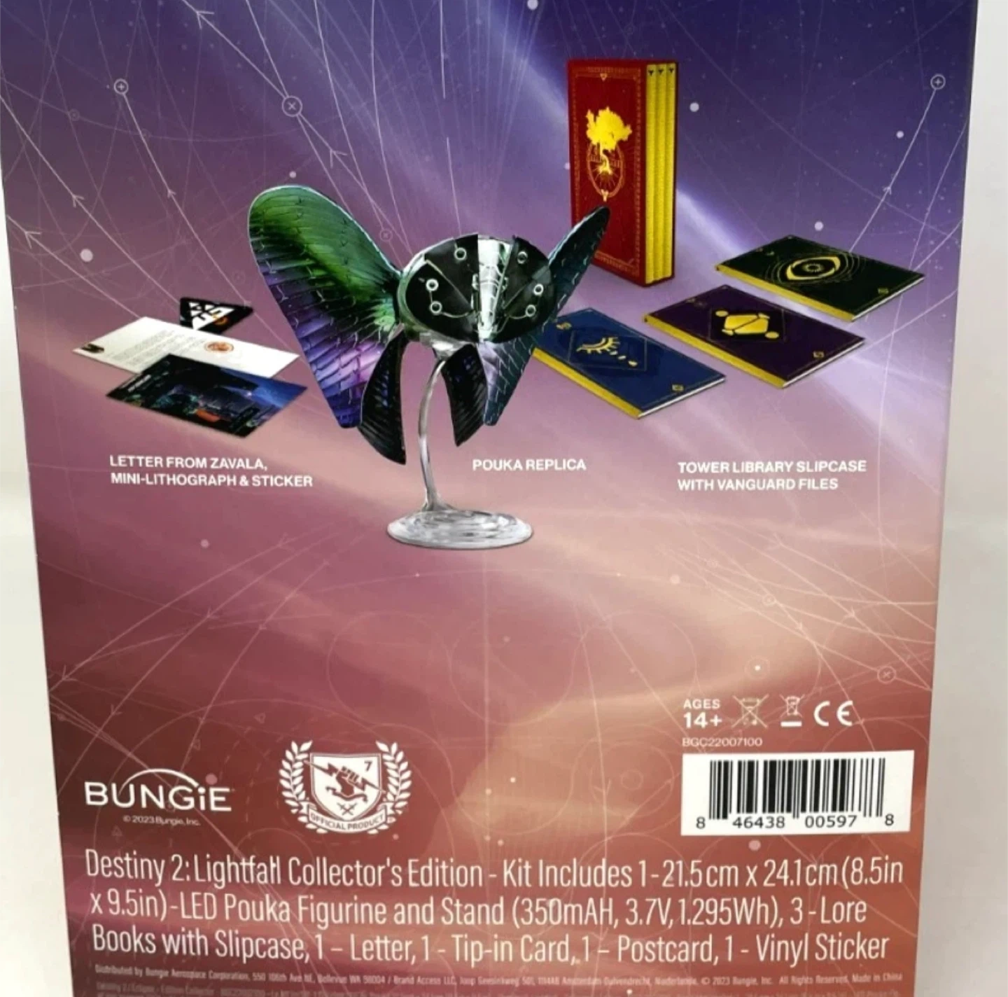 Includes 1 (8.5in x 9.5in) LED Pouka Figurine and Stand (350mAH, 3.7V, 1.295Wh), 3 Lore Books with Slipcase, 1 Letter, 1 Tip-in Card, 1 Postcard, 1 Vinyl Sticker