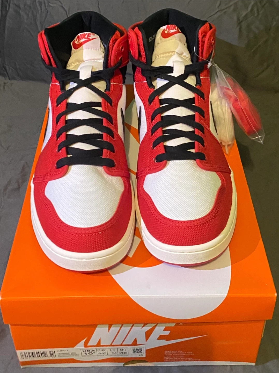 These are in perfect condition and come with the original box. The colourway is a classic red and white, perfect for any sneakerhead!