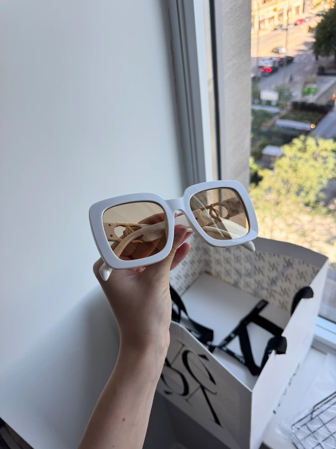 Stylish white like Versace sunglasses. Comes with the box!