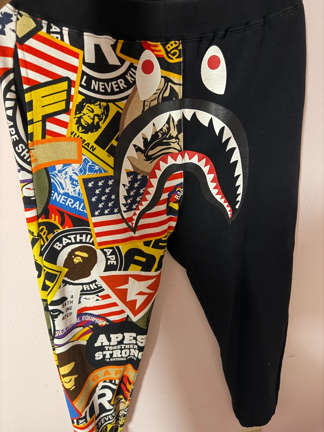 BAPE Patched Shark Sweat Pants - Black, Size M