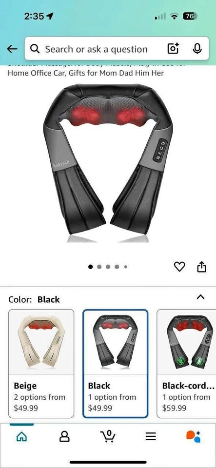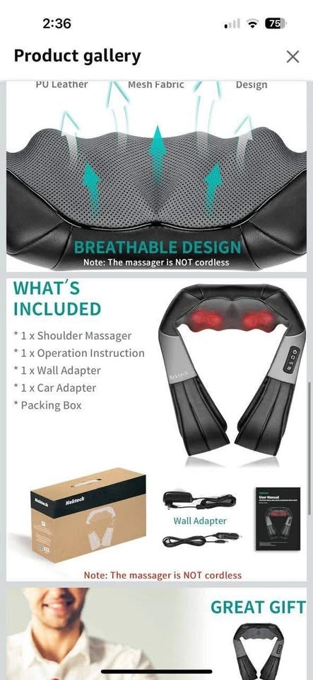 Deep-kneading 3D massage nodes with optional heating function for ultimate relaxation. Adjustable speed, direction, and 15-min auto shut-off. Comes with both car and wall adapters – perfect for home, office, or travel use.