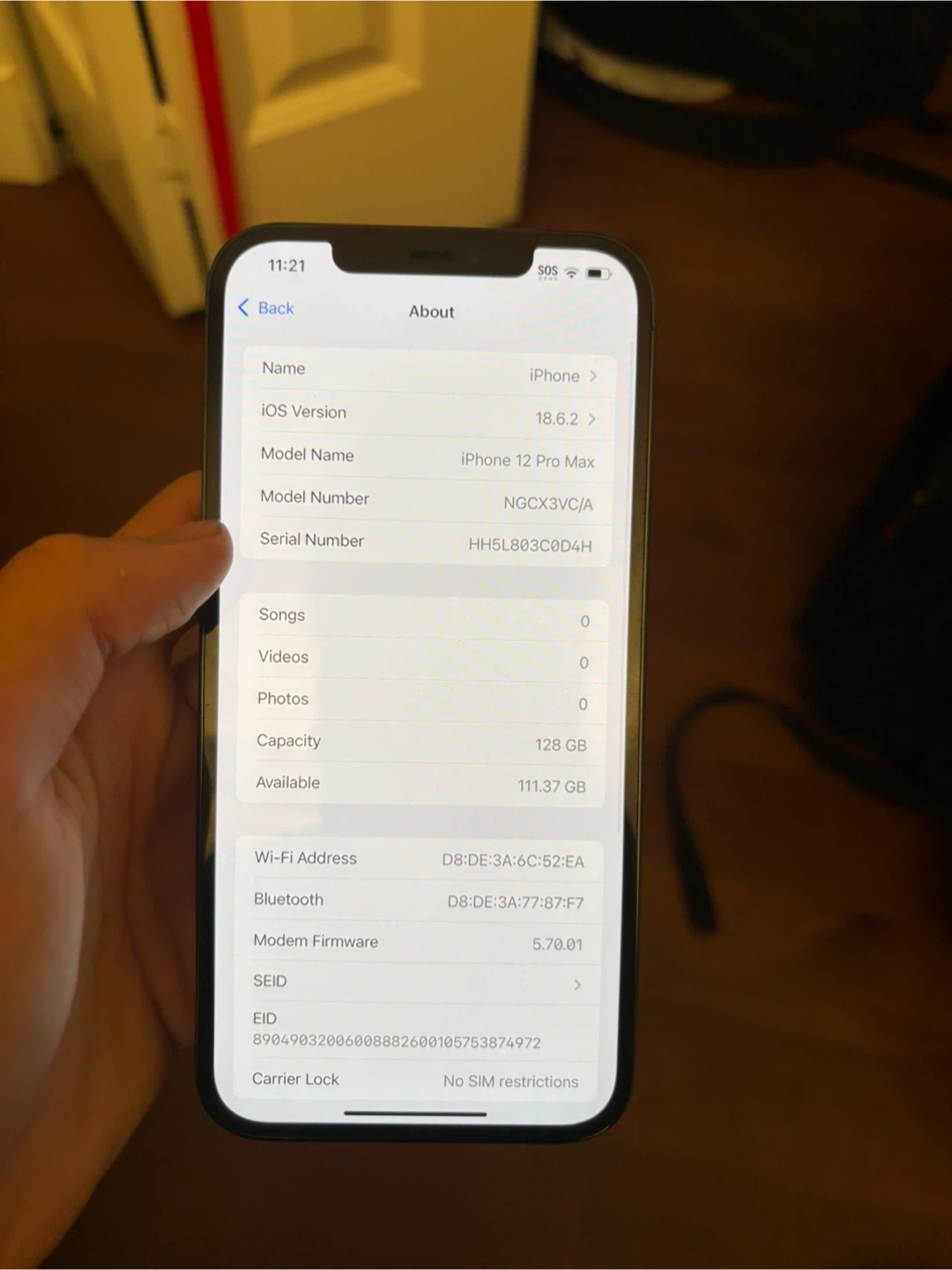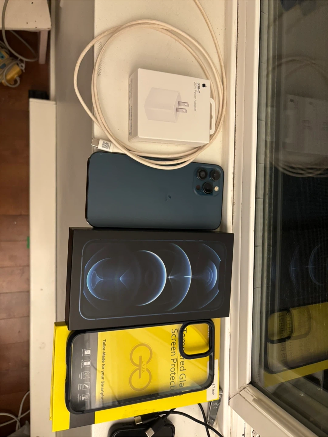 Selling an iPhone 12 Pro Max with 128GB storage, fully unlocked and ready to use with any carrier.