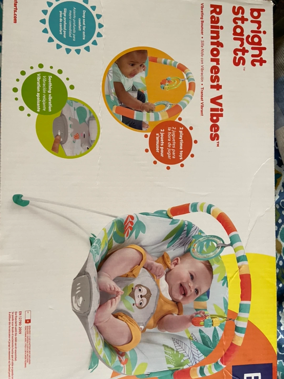 Selling a Bright Starts Rainforest Vibes vibrating bouncer! It has a deep seat for extra comfort and soothing vibrations to keep your little one happy. Comes with 2 playtime toys to keep baby entertained. Suitable from birth until the child can sit unassisted