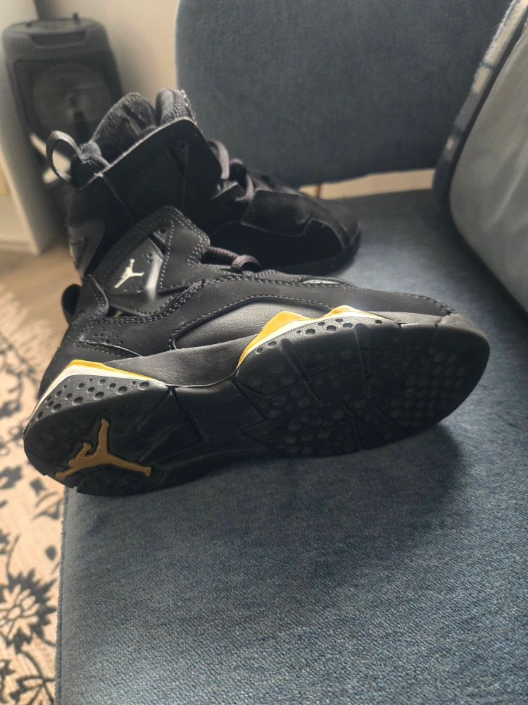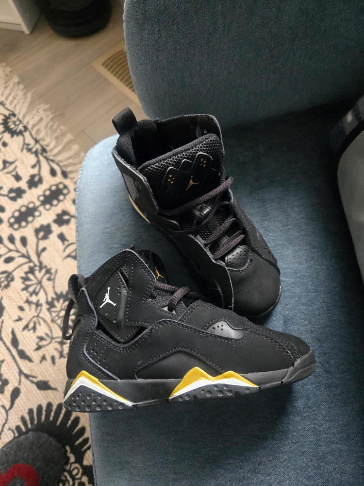 18Selling a pair of Jordan True Flight toddler shoes in size 11C. They're black with gold accents and in great condition. Perfect for your little one!