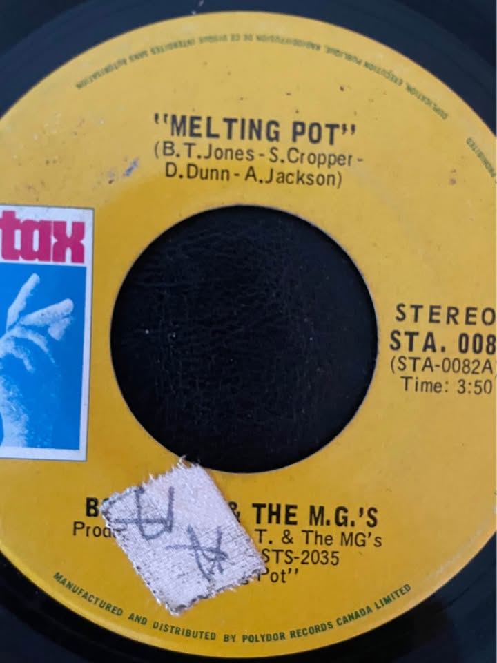 Booker T. & The M.G.’s — Melting Pot / Kinda Easy Like (Stax STA‑0082 / Canadian Issue) 7” vinyl: Original or regionally distributed version of the 1971 Stax single pairing the funk gem Melting Pot with Kinda Easy Like. A classic instrumental soul/funk release sure to draw interest from collectors and DJs. • Side A: Melting Pot • Side B: Kinda Easy Like • Label: Stax (with Canadian distribution) • Format: 7″, 45 RPM • Pickup in West Queen West, Toronto