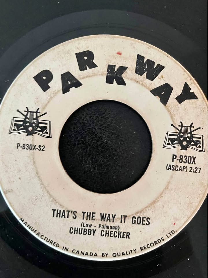 Vintage Canadian 7” 45 RPM from Parkway’s Canadian imprint. Features The Fly (dance classic) backed with That’s the Way It Goes. A rare variant for Canadian 45 collectors and Chubby Checker discography fans.