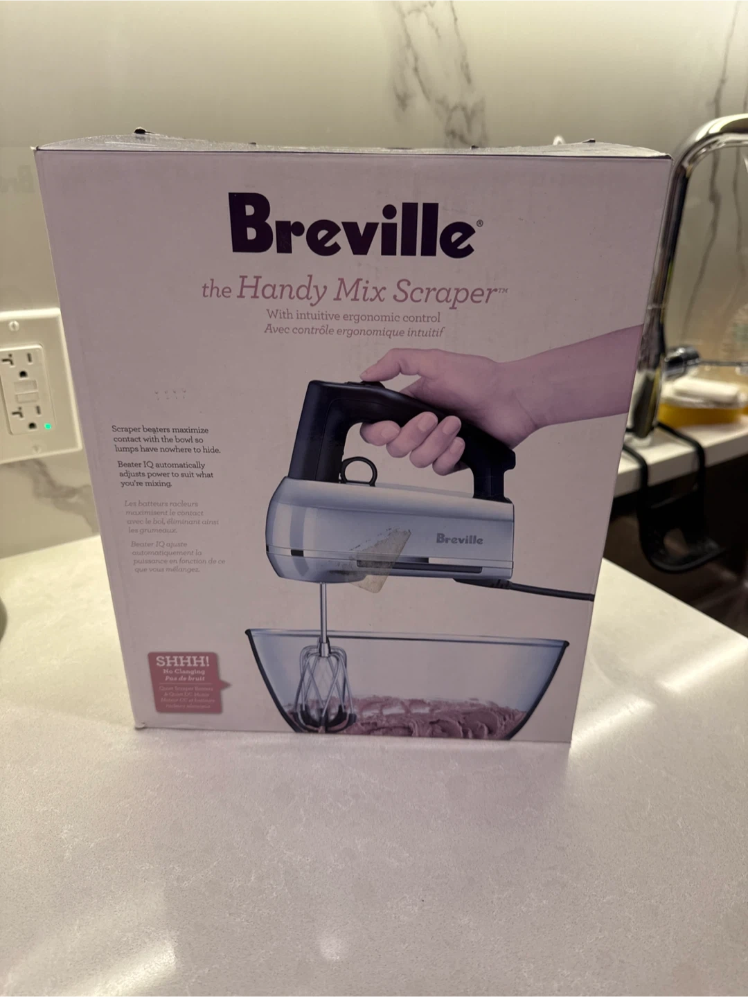 Selling a Breville the Handy Mix Scraper hand mixer! It's in like-new condition and comes with all the original attachments, including the balloon whisks and dough hooks. This mixer has 9 speeds plus a boost function for all your baking needs. It also features an intuitive interface and a balanced ergonomic handle. Comes with the storage case and original box!