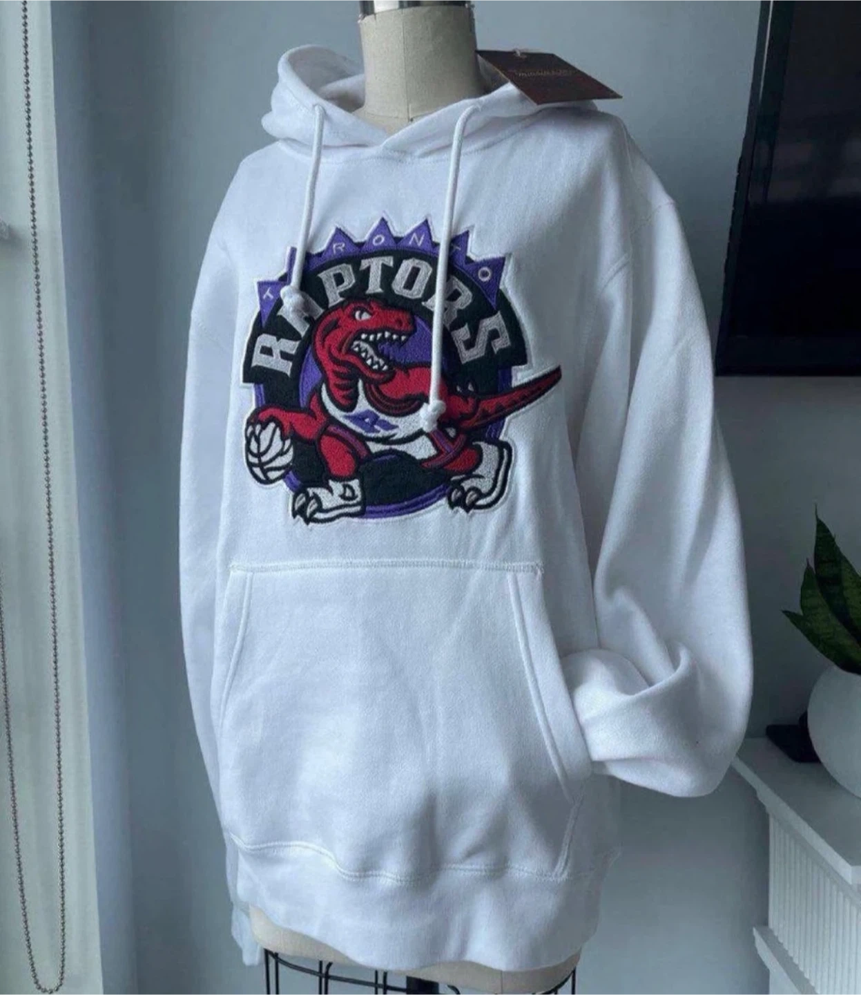Selling a Toronto Raptors hoodie in white. It has a large Raptors logo on the front. Perfect for any fan!