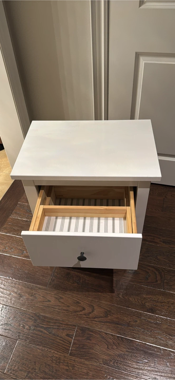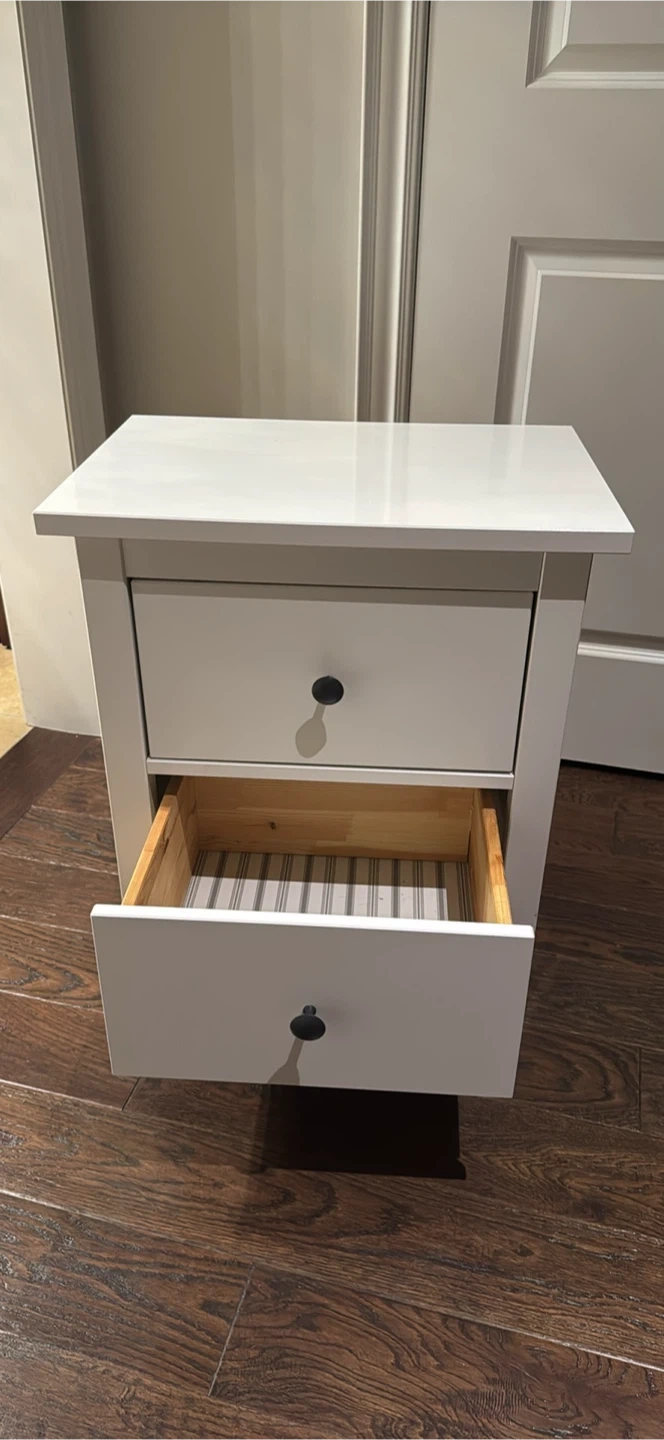 Buy & SellIKEA HEMNES White 2-Drawer Nightstand - ONLY 1IKEA HEMNES White 2-Drawer Nightstand - ONLY 1$84Selling a cute white nightstand with two drawers. It's in great shape and would look lovely in any bedroom!ConditionLike newWHERE TO MEETCheck LocationView MapSELLERverifiedeepNobleton832 reviews2 chats·1 favorites·46 views