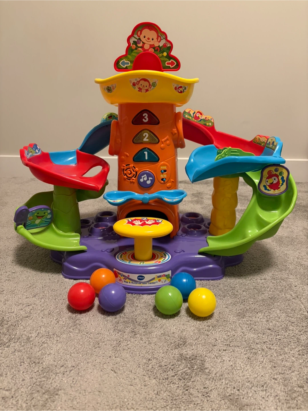 Selling a VTech Pop & Surprise Ball Center! It's a fun and interactive toy for kids. It includes colourful balls to drop and watch roll down the tower. Great for developing motor skills and hand-eye coordination