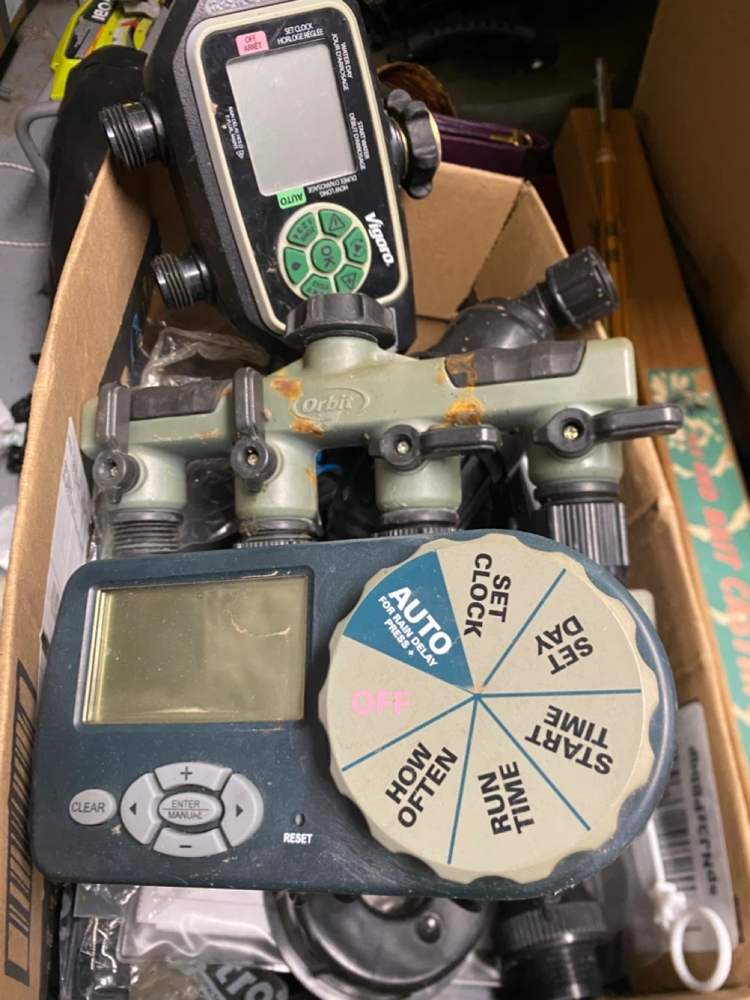 Selling a couple of garden irrigation timers ! One is an Orbit timer and the other is a Vigaro. For keeping your garden watered. They both have issues but do operate. Also have a LARGE roll of irrigation tubing that goes with it.