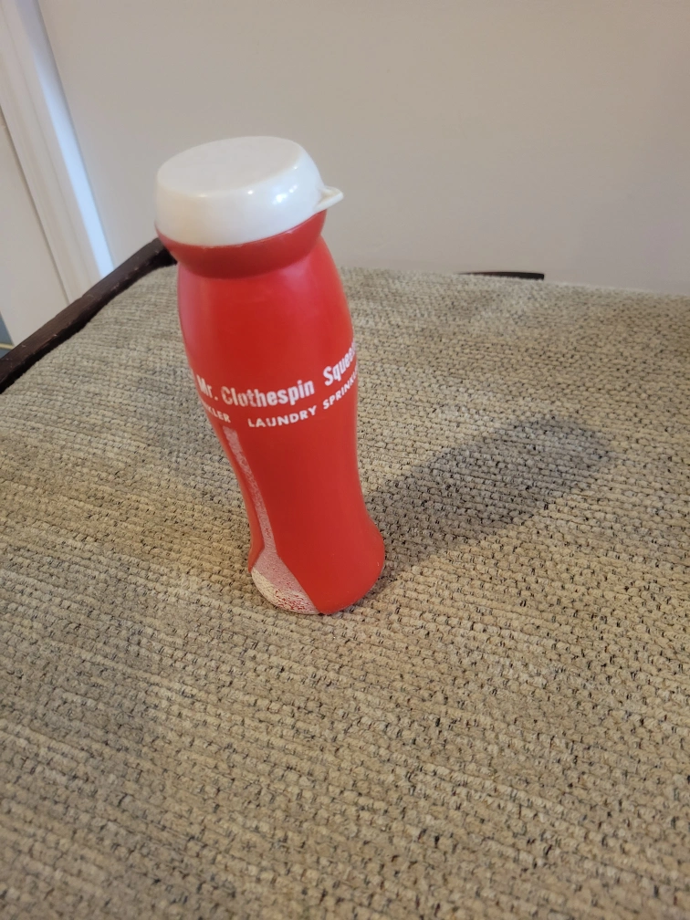 Vintage Mr. Clothespin Squeeze Me! Mr. Clothespin Laundry Sprinkler. This nostalgic laundry sprinkler is ready to assist with your ironing needs, dispensing just the right amount of moisture to get your garments crisp and wrinkle-free. Please note it's a used item with some wear (as shown in the photos), but it's still functional and adds a touch of retro charm to your laundry routine. If the ad is still up, it's available! $15 Firm Fennell and Upper gage Hamilton Please click on my many ads for sale