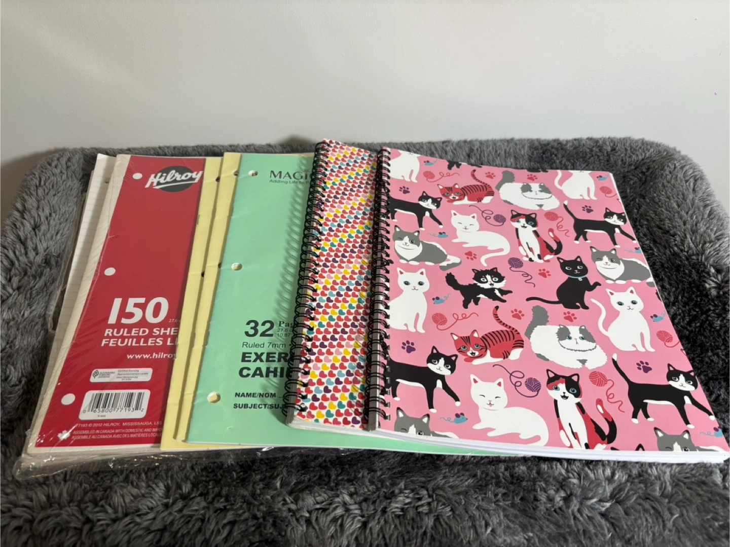 28Getting ready for back to school? I have a few notebooks for sale! There is 2 Hilroy pack of 150 ruled sheets, 3 exercise book with 32 pages, and 2 cute spiral notebook with a cat pattern 120 pages