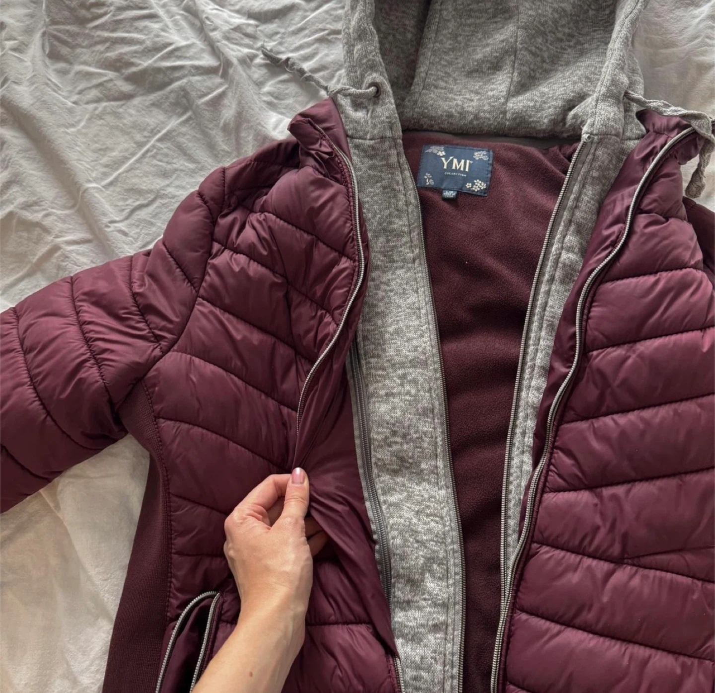 Cozy YMI puffer jacket in a lovely burgundy colour! It's features a grey hood. Perfect for staying warm and stylish during cooler weather!