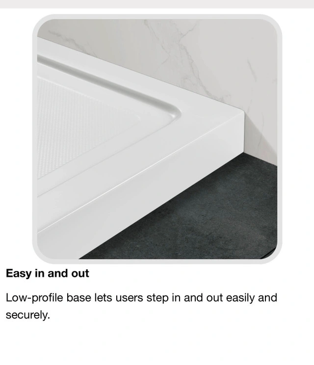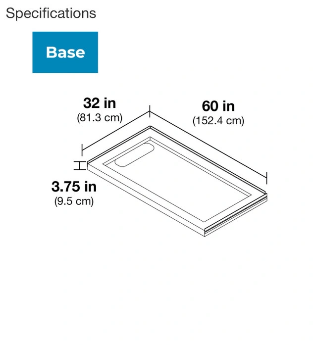 Upgrade your bathroom with this sleek OVE Decors Elias 60-inch shower base! Featuring a low-profile design and textured surface, this base offers both safety and style. It is in great condition. Here are the specifications: * Dimensions: 60 inches x 32 inches * Low profile base for easy access * Textured surface to reduce slipping * Easy to clean $350 obo