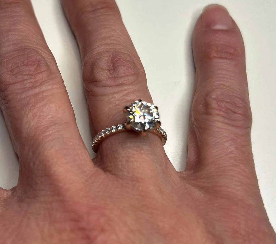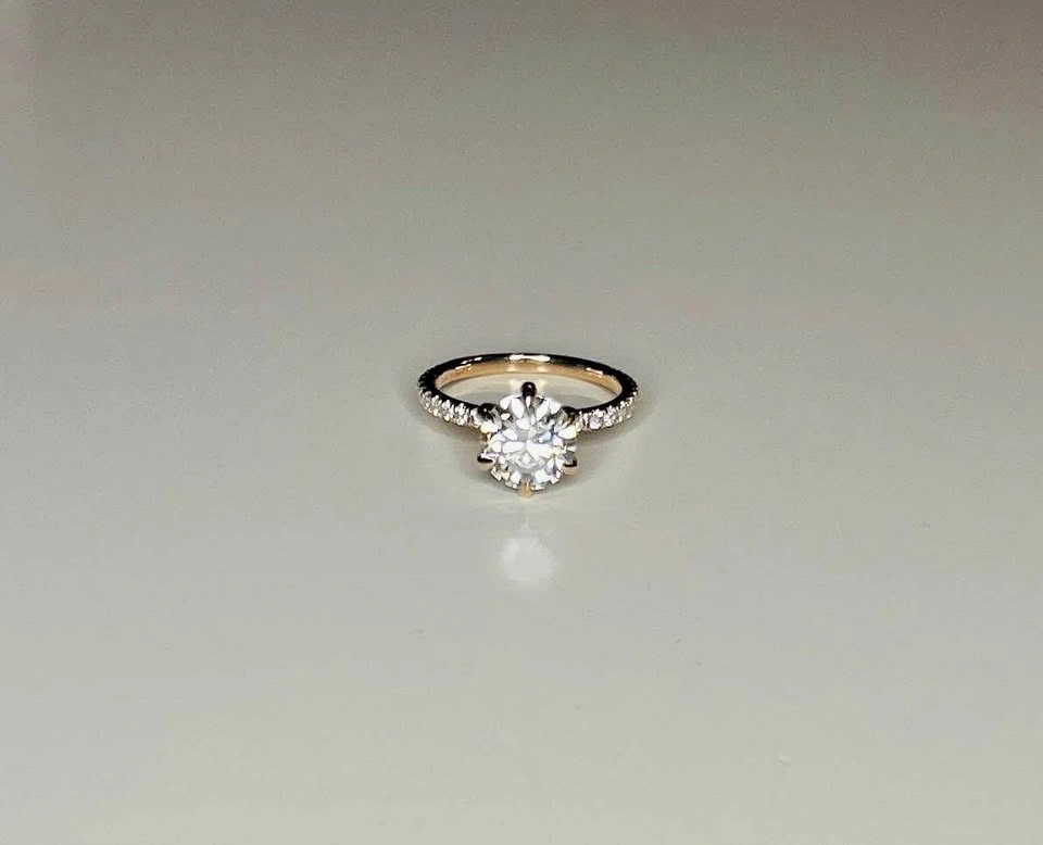 2 Carat Brilliant Round Moissanite Hidden Halo Pave Engagement Ring, D VVS1, 14K Rose Gold