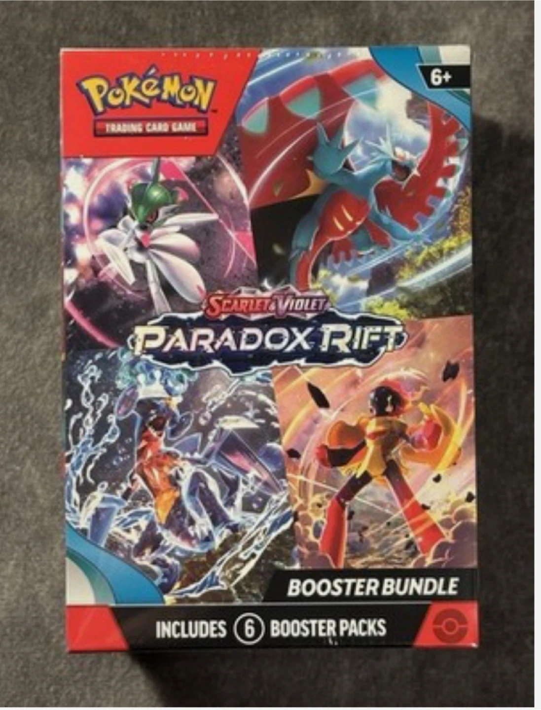 Selling a Pokémon Trading Card Game Scarlet & Violet Paradox Rift Booster Bundle! It includes 6 booster packs and is suitable for ages 6+