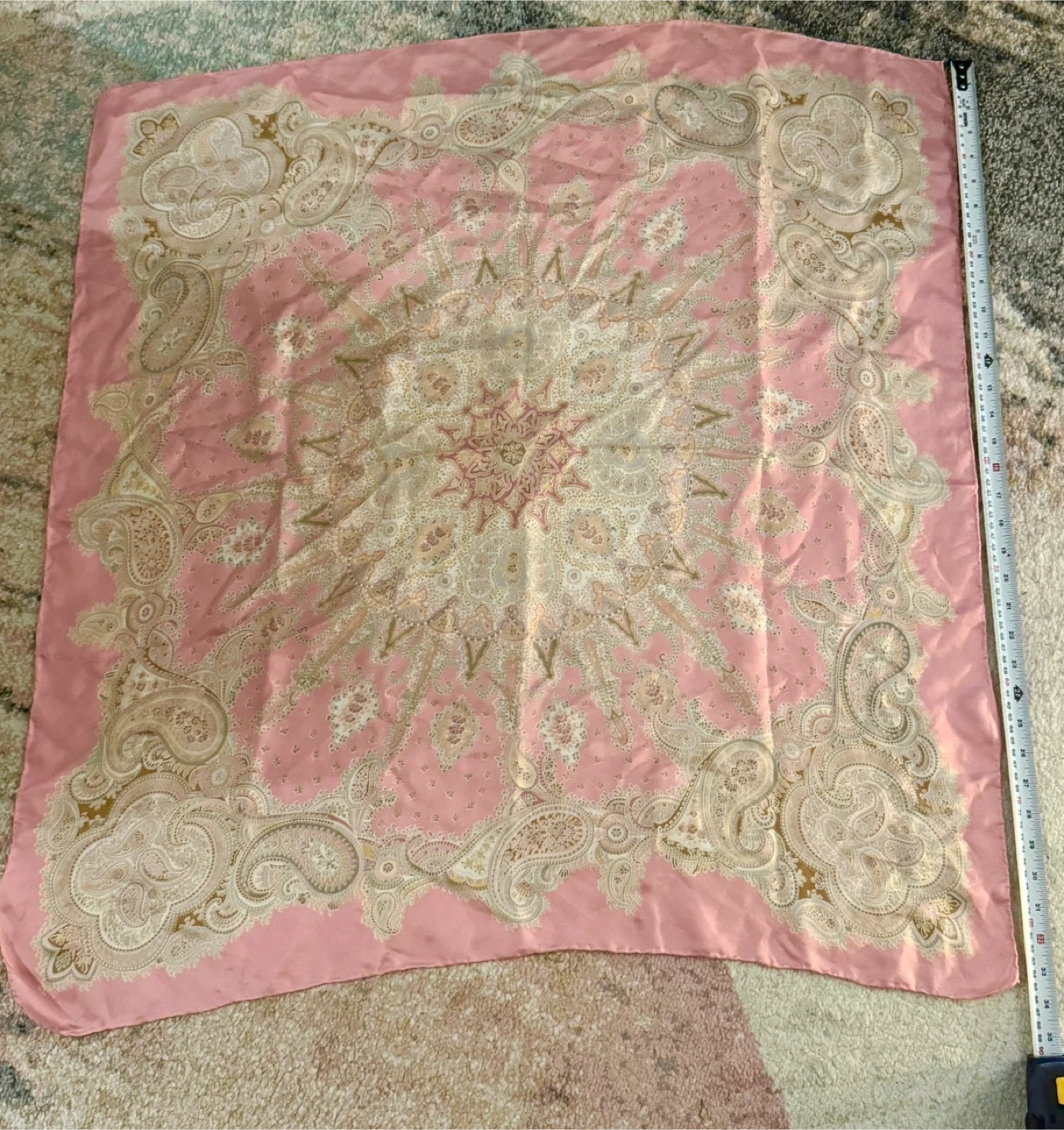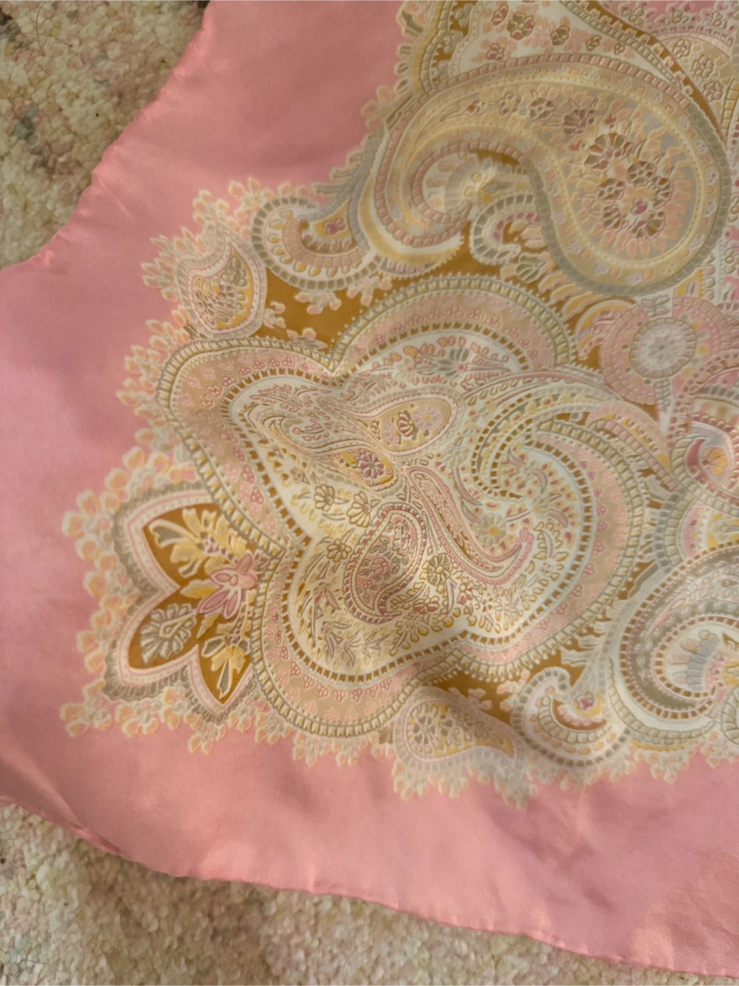 Buy & SellPink Paisley ScarfPink Paisley Scarf$15Selling a silk super soft pink scarf with a paisley pattern! It's in great condition and would be a lovely addition to any outfit!ConditionLike newSize84 cm X 84 cmWHERE TO MEETTIFF Bell LightboxView MapSELLERverifiedHasti HEntertainment District1919 reviews0 chats·0 favorites·20 views