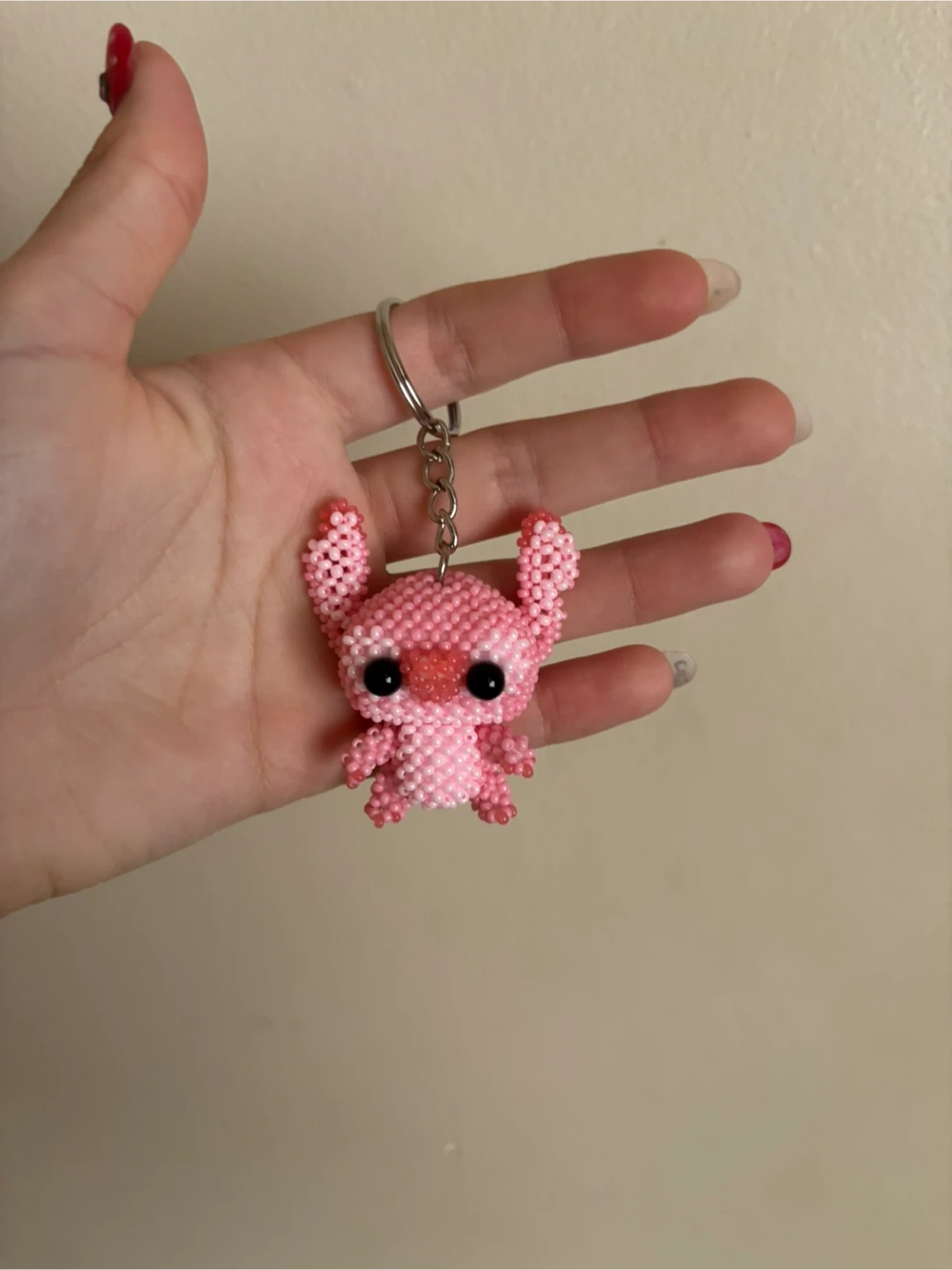 Super cute pink beaded Stitch keychain! It's in great condition and would be perfect for adding a touch of fun to your keys or bag