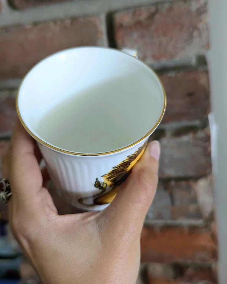 Collector mug royal lion with Union Jack Royal Albert Bone China, England “Royal Rampart Lion” (C77-1) Fine bone china with gold accents Dimensions: approx. 3.5" tall Excellent vintage condition. no chips, cracks, or fading