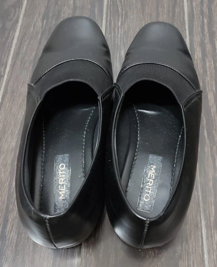 Step into classic style and all-day comfort with these Merto Black Women’s Formal Flats. Perfect for office wear, formal occasions, or everyday use, these flats are designed with a sleek black finish and a slip-on style for easy wear. ✨ Key Features: Brand: Merto Color: Black Style: Formal Flats – versatile for work, meetings, or casual outings Size: 5.5 (Women’s) – as shown in image Durable sole with slip-resistant texture for stability Lightweight and comfortable design for daily wear Closed-toe for a polished and professional look Whether you’re dressing up for an interview, heading to work, or just want a reliable pair of flats, these Merto shoes combine style, comfort, and practicality.