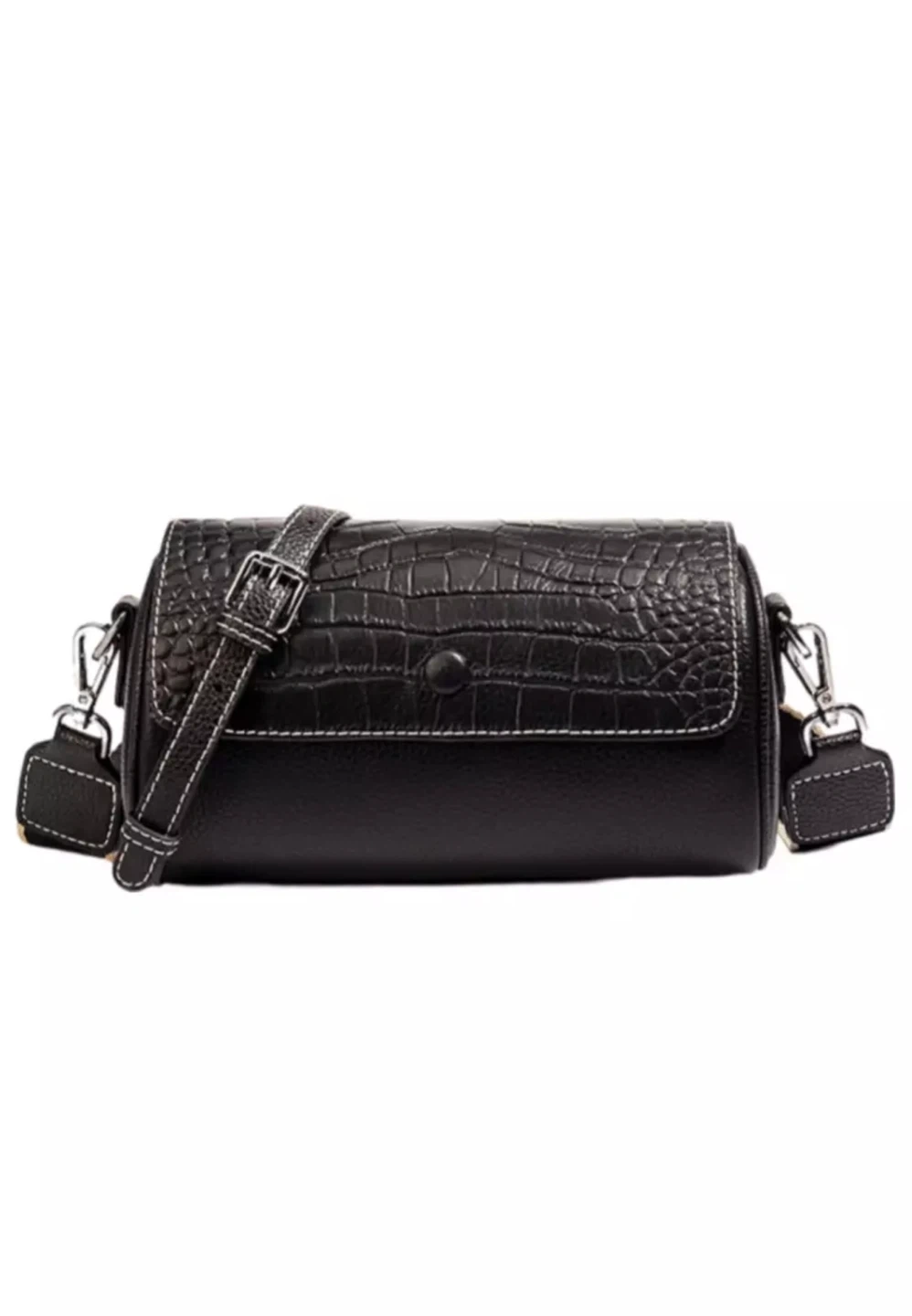 Black Croc Embossed Barrel Bag