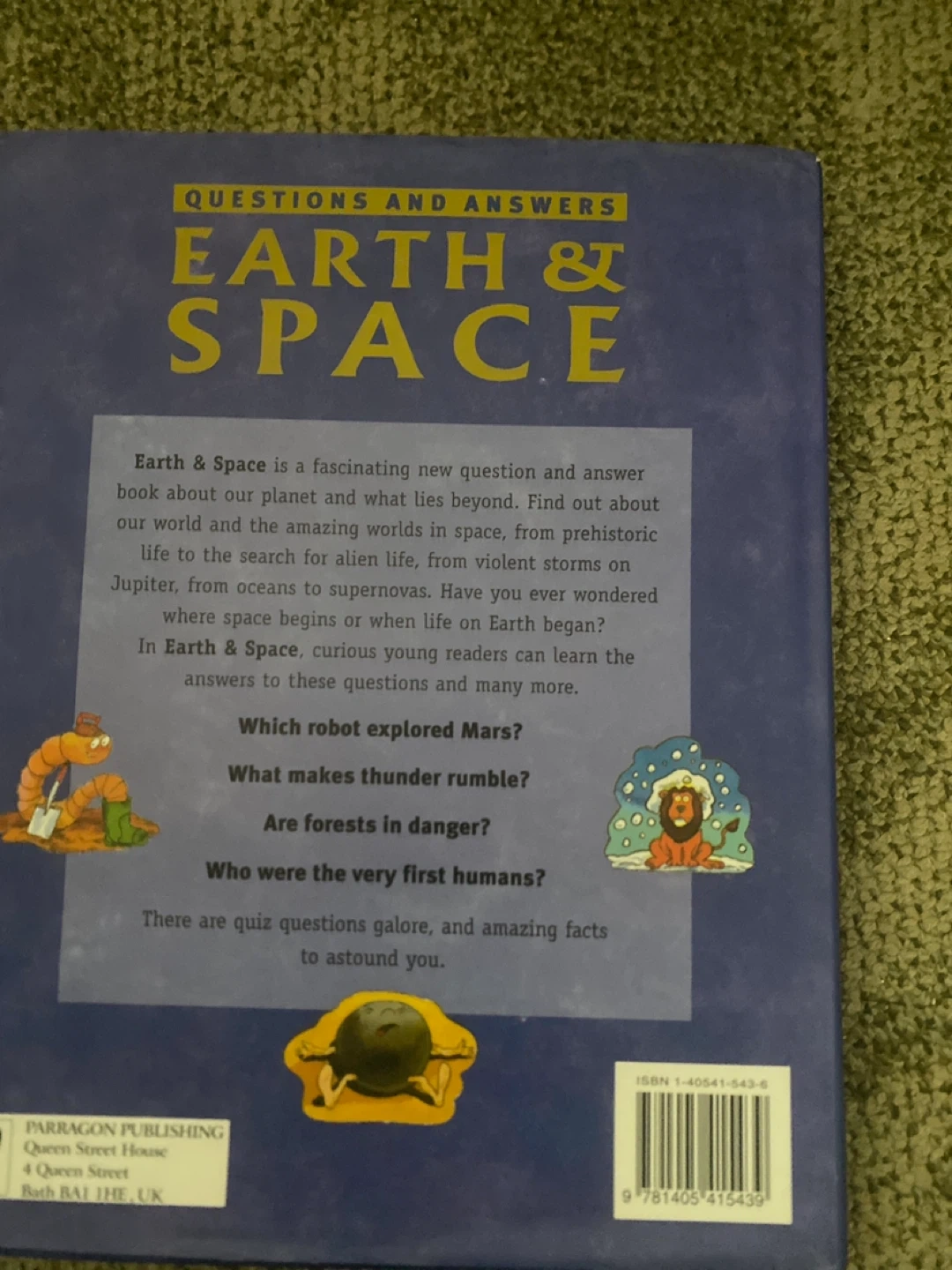 Earth & Space is a fascinating question and answer hard cover book about our world and the amazing worlds in space, from prehistoric life to the search for alien life, from violent storms on Jupiter, from oceans to supernovas. Have you ever wondered where space begins or when life on Earth began? In Earth & Space, curious young readers can learn the answers to these questions and many more over 250 pages of fun.