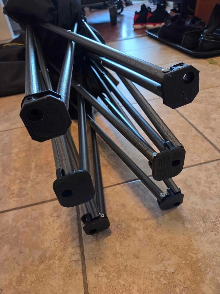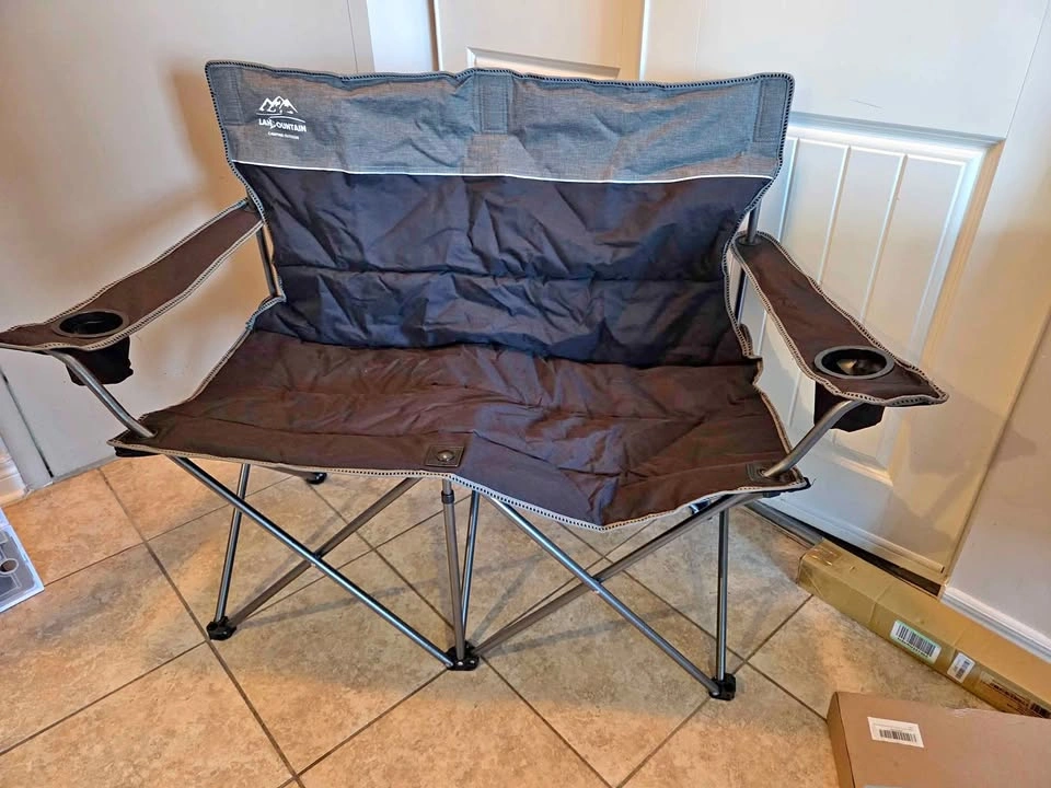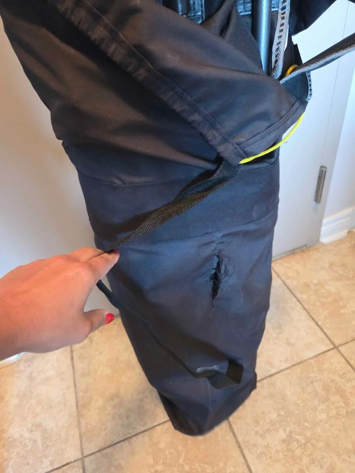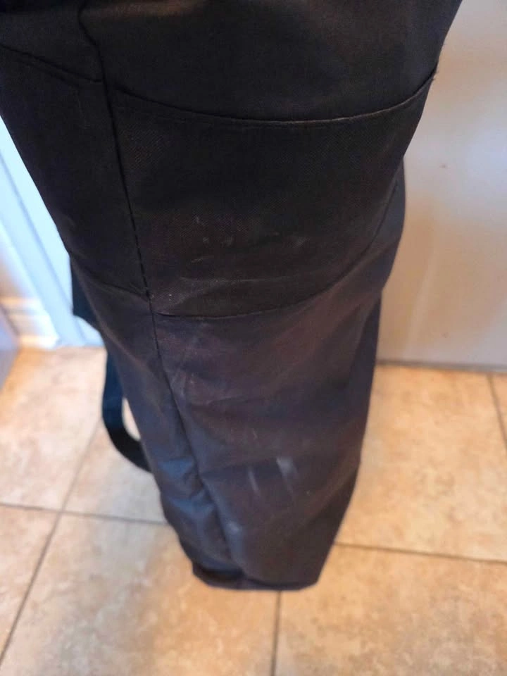 Carry bag has a minor tear and some discoloration from storage. The chair is intact.