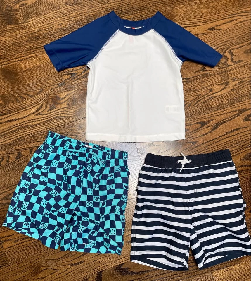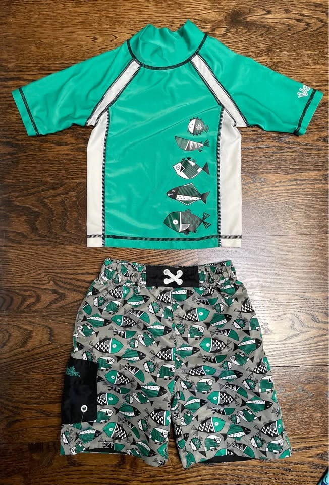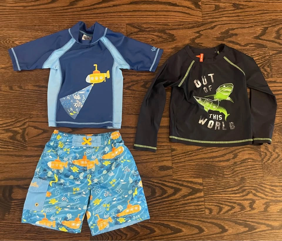 Pic 1- Size 4T swim trunks and rash guard- $7 per piece Pic 2- Size 5T swim trunks and rash guard- $7 per piece. *Rash guard SOLD Pic 3- 5T rash guard & swim trunks set- $12 for the set Pic 4- 4T swim set ($12 for set), and 4T rash guard ($7). Pic 5- 5T Swim Trunks- $7 each Queensway & Islington