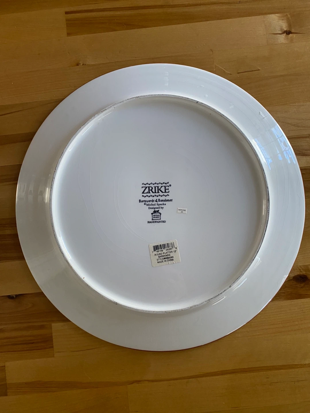 Buy & SellZRIKE Barnvard & Bandanas Platter 13"ZRIKE Barnvard & Bandanas Platter 13"$40This ZRIKE platter features a charming barnyard scene design. It's 13 inches in diameter and made of ceramic. Dishwasher safe.Dimensions13.2”x13.2”WHERE TO MEETKings Highway Q-B train stationView MapSELLERverifiedGulnurAvenue P701 review0 chats·0 favorites·5 viewsSEND CHAT TO SELLERHi Gulnur! I’m interested in your listing.Hi Gulnur! I’m interested in your listing.Get the Karrot app to chatSign In to chat