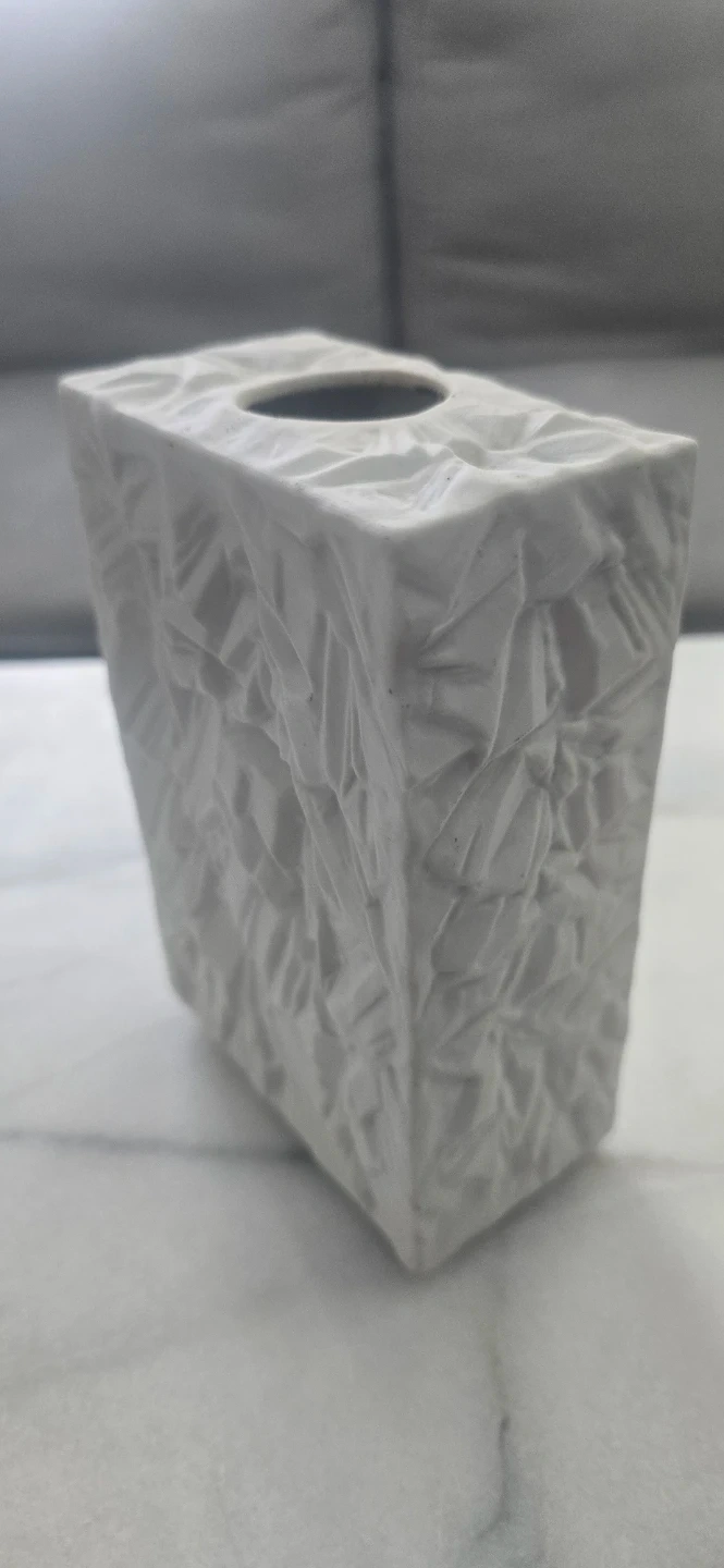 This is a vintage Shumann Arzberg white bisque porcelain vase. It has a unique textured design all over. Made in Germany.