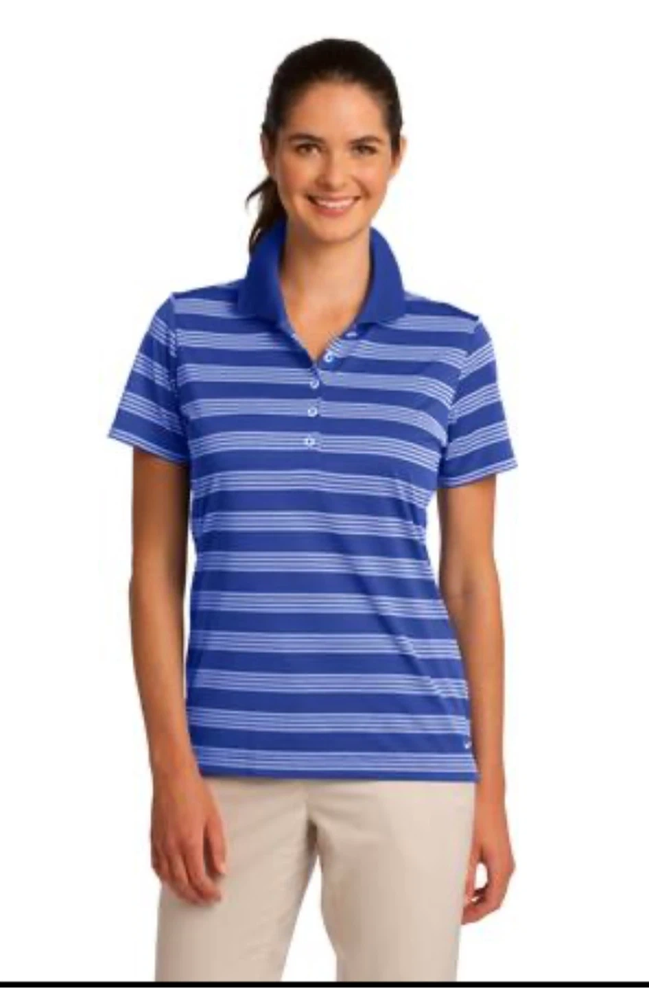 Like new Nike Golf dry fit polo. The shirt features Nike's Dri-FIT technology, perfect for staying cool on the golf course or just out and about. Blue and white stripes with collar and Nike emblem in bottom corner. Size Small.