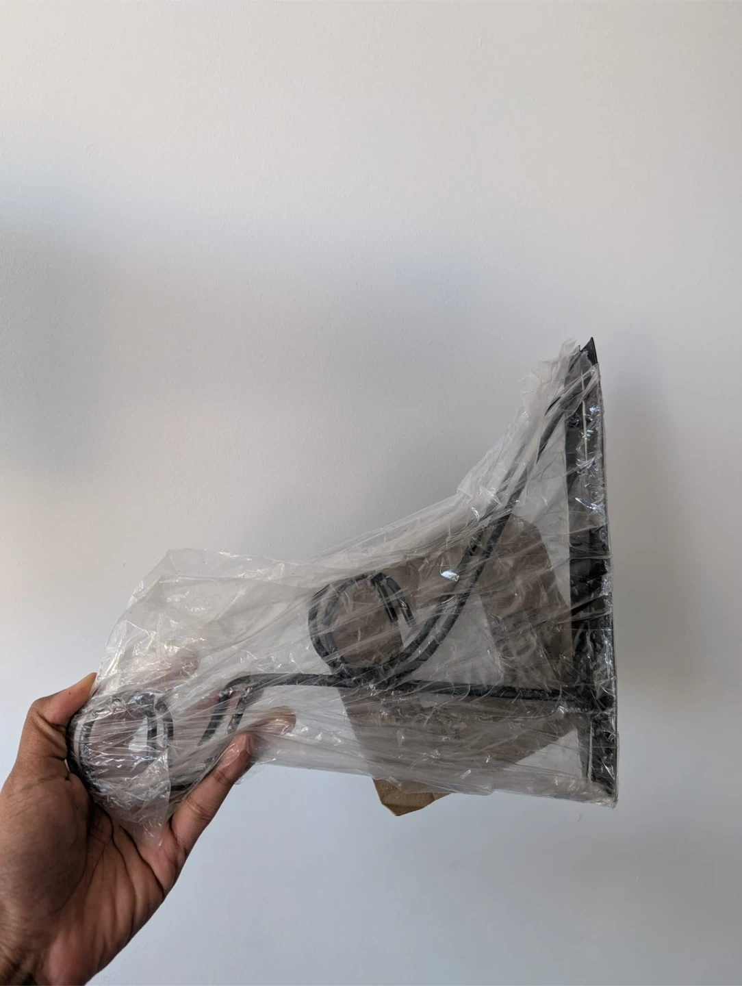 Selling a black metal wall shelf, still in its original packaging. It's a stylish and practical piece for any room. Perfect for adding some extra storage or displaying your favourite items