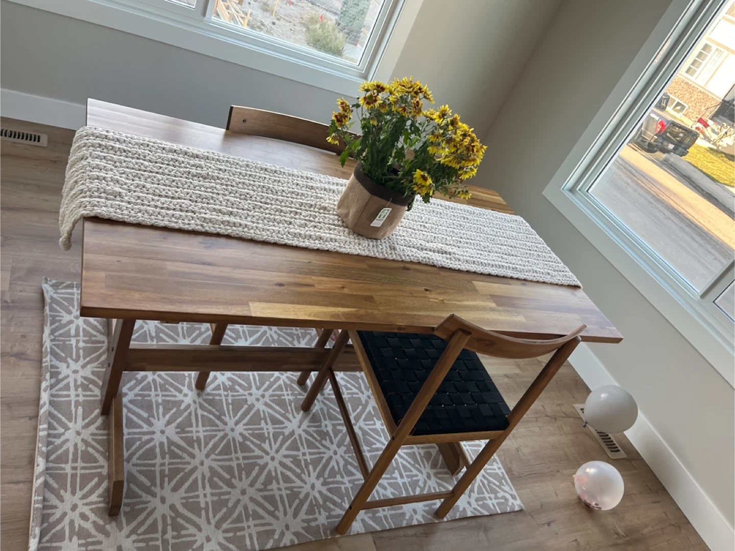 Selling a lovely dining table with chairs. It's in great condition and ready for a new home. Perfect for family dinners or gatherings with friends!