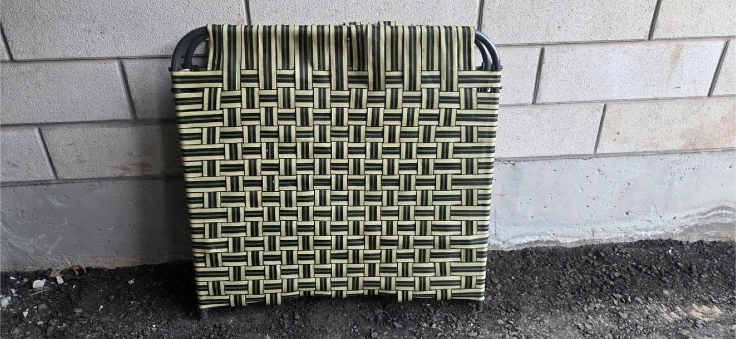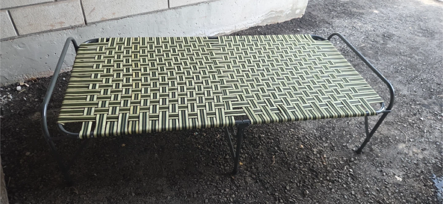 This folding woven bed is in great condition and ready for a new home! It's lightweight and portable, making it perfect for camping.Easy to fold up and store when not in use