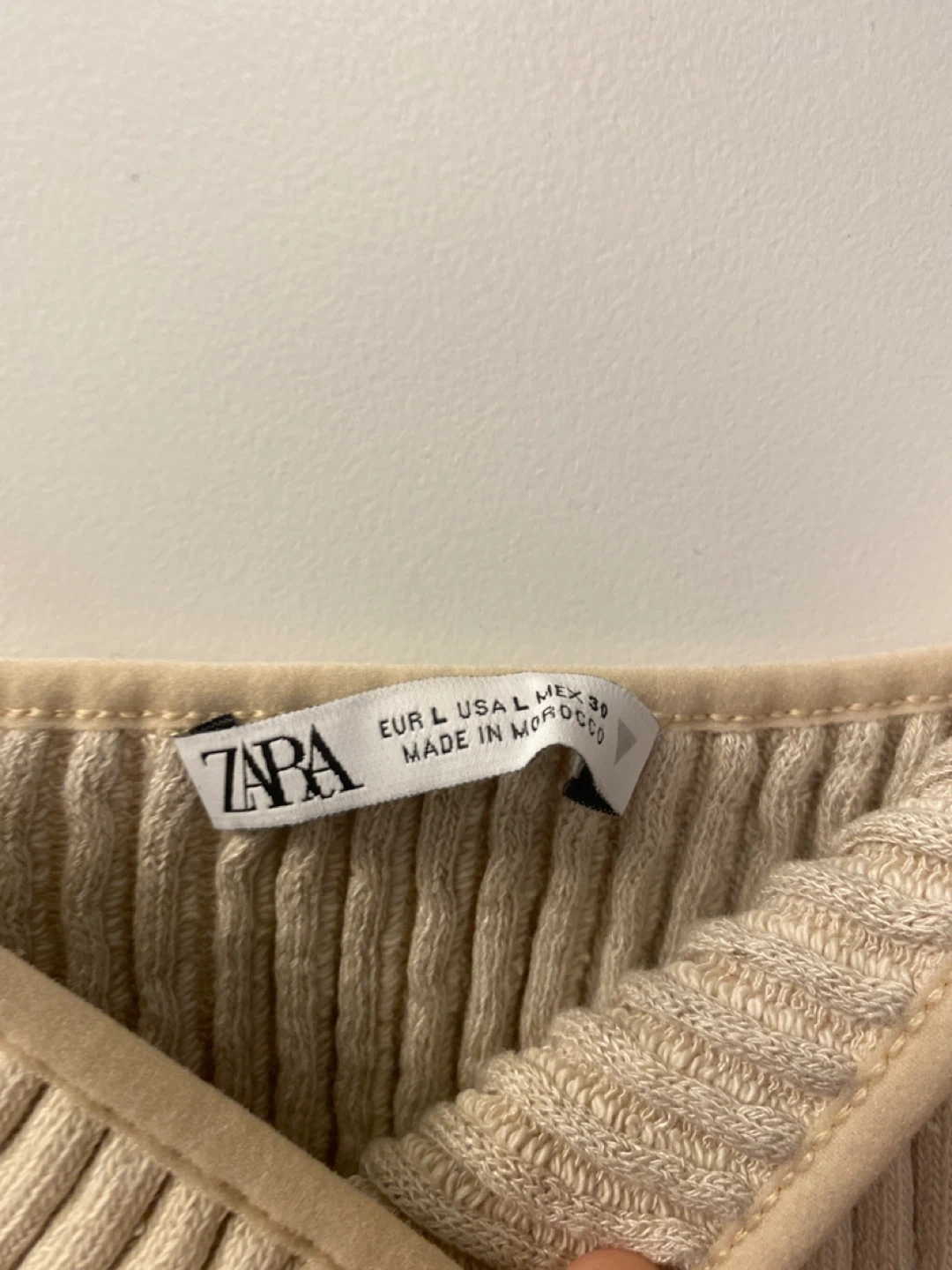 Selling a knit corset top in a neutral colour! It's a size large and made in Morocco. The material is soft and ribbed, perfect for layering or wearing on its own. It's in great condition!
