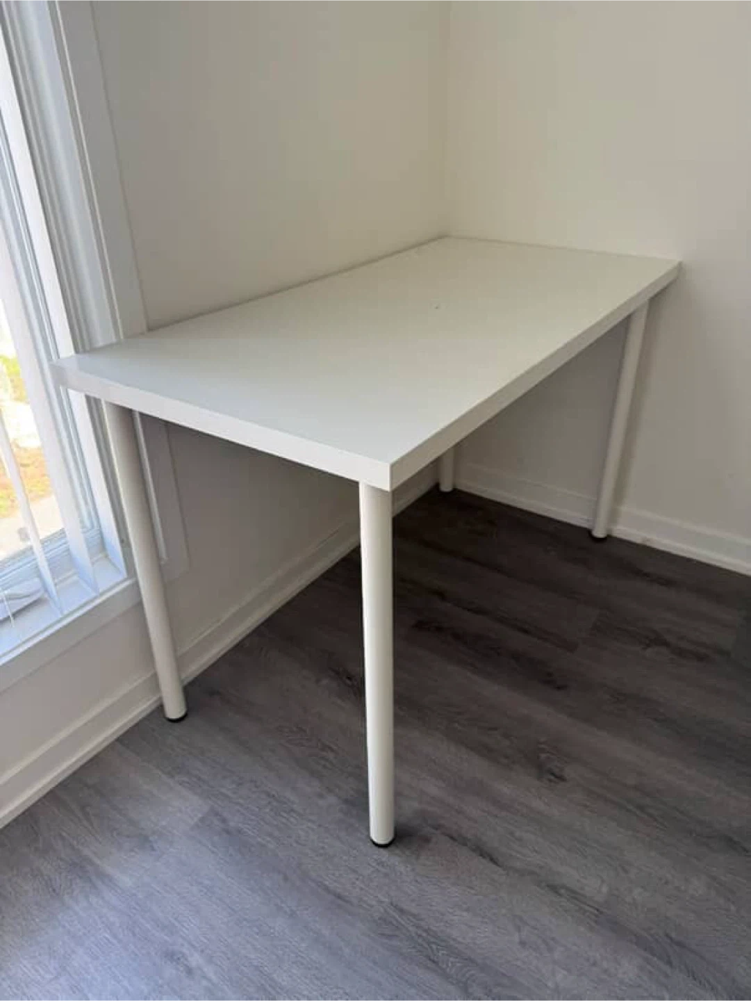 Selling a simple white desk! It's in great shape and would be perfect for a home office or student. The desk is a clean, minimalist design that fits well in any room.