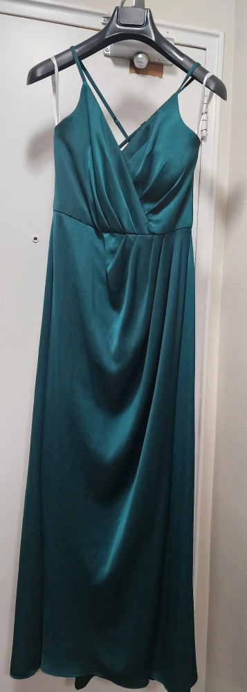 Selling a beautiful emerald green gown from David's Bridal. It's a size 8 and worn for 3h. The dress features a stylish cross-back design (this was added by my seamstress to make it adjustable. was originally just a zipper)