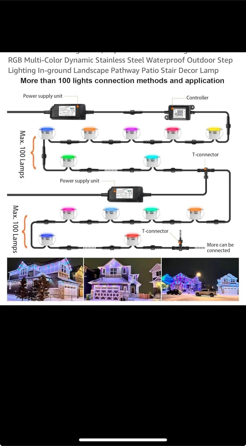 RGB Multi-Color pixel deck light is able to show multicolor chasing in a line on one light string.