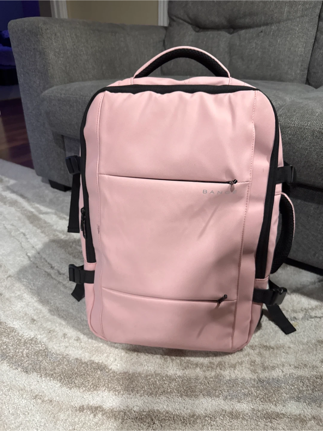 This BANGE backpack is in great condition and ready for a new home! It features a stylish pink colour with black accents. Perfect for school, work, or travel
