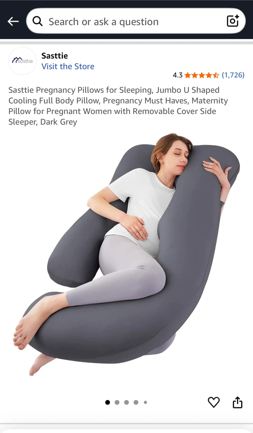 Selling a Sasttie Jumbo U shaped cooling full body pregnancy pillow in dark grey. It's designed for pregnant women and offers support for side sleepers. Originally bought for $49.99! Used a couple of times.