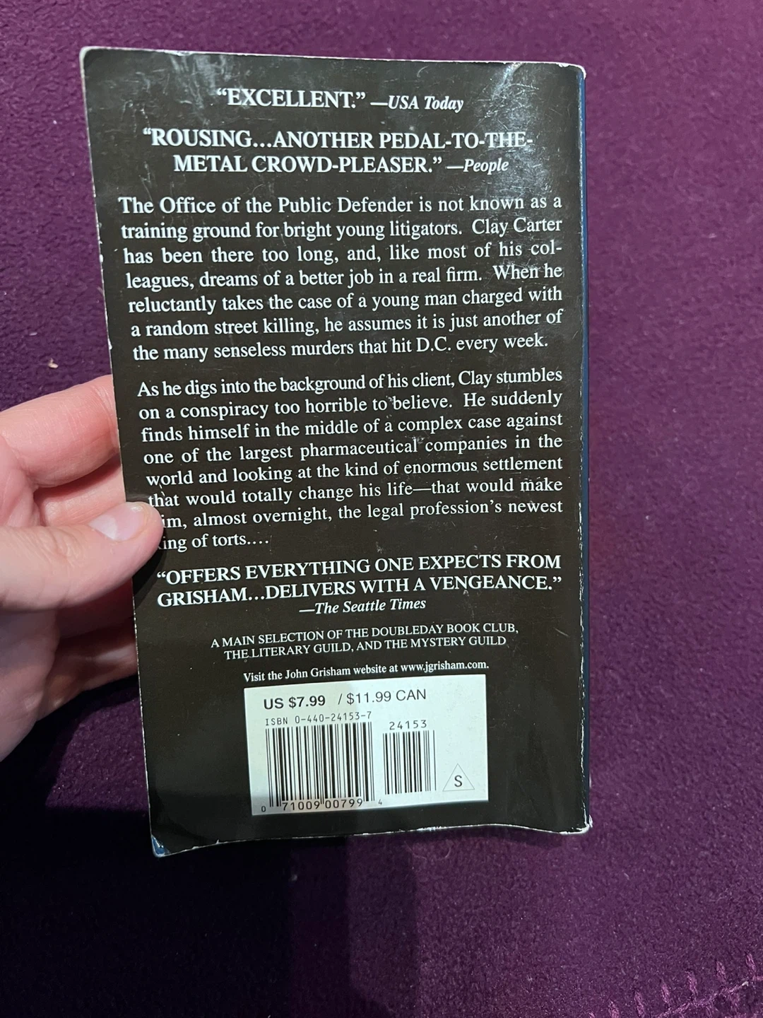 Selling "The King of Torts" by John Grisham! It's a New York Times bestseller and a thrilling read about the legal profession. Perfect for anyone who enjoys a good conspiracy and courtroom drama