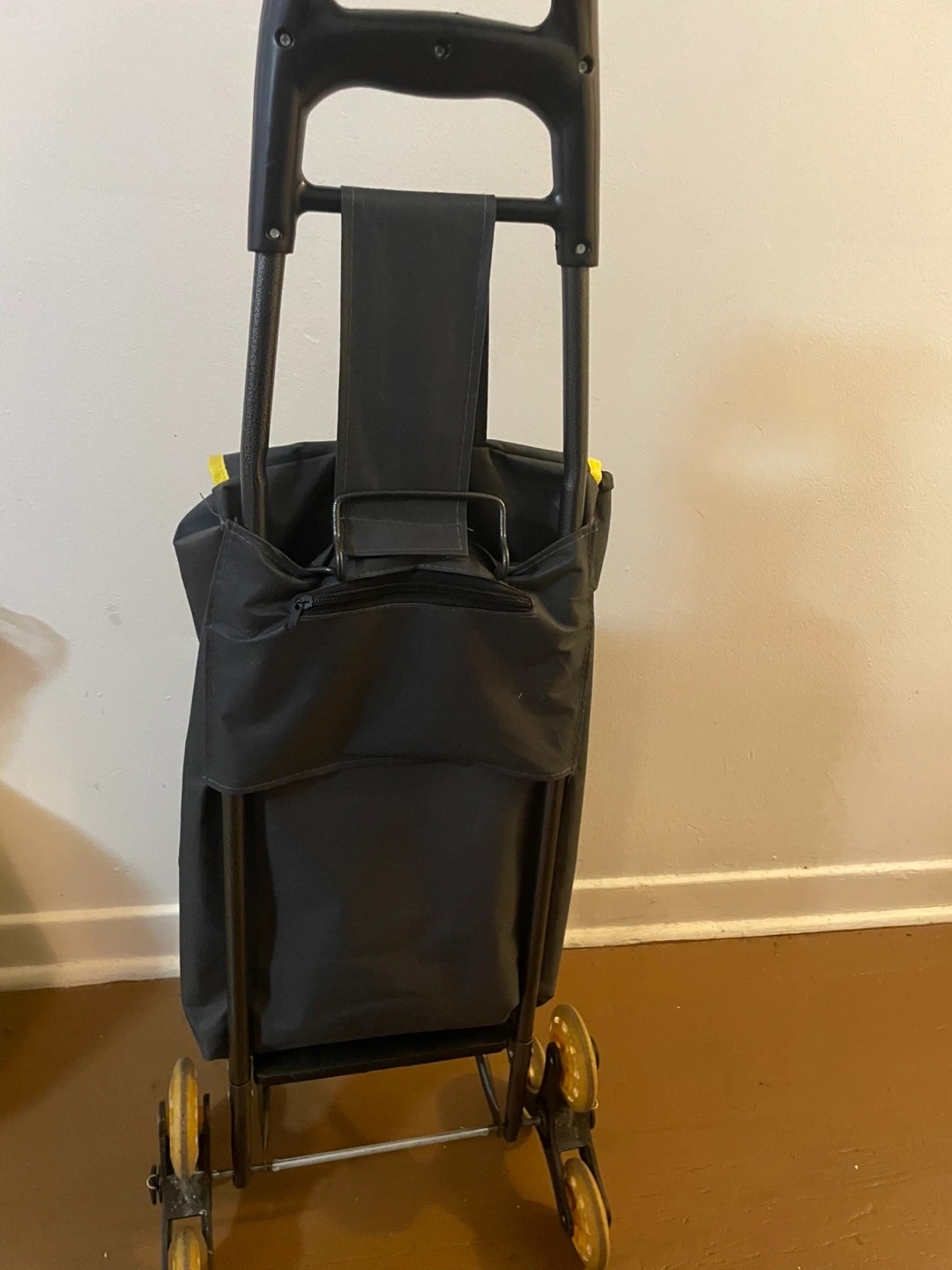 Selling a Hurricane stair climber shopping cart. It's black with yellow trim. The wheels are designed to make it easier to pull up stairs. Great for groceries!