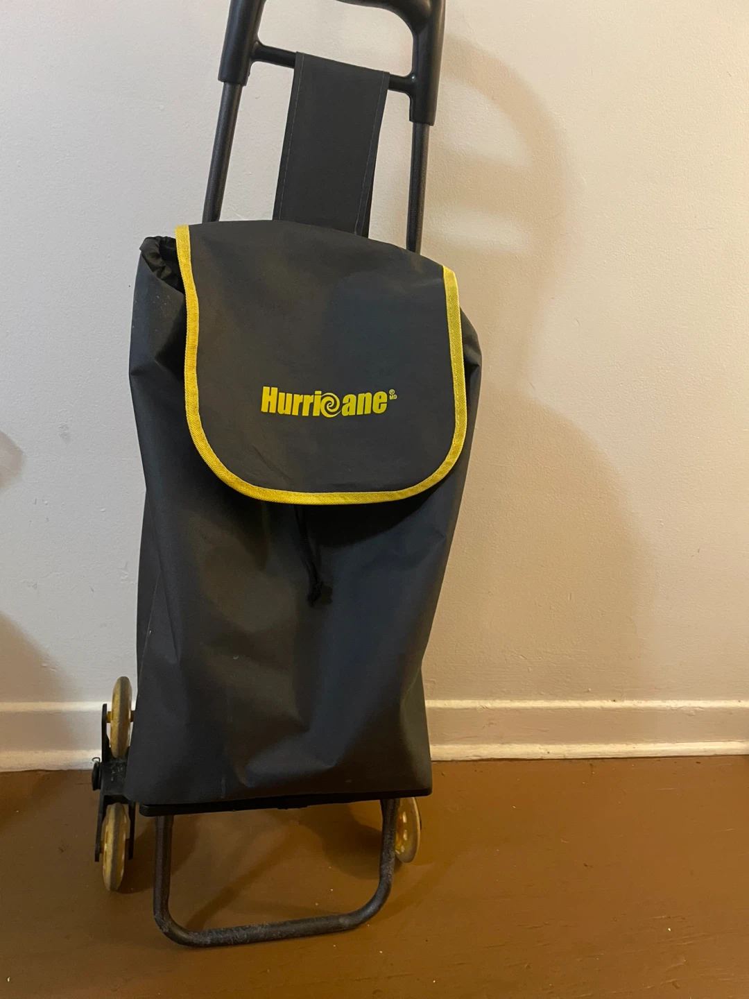 Selling a Hurricane stair climber shopping cart. It's black with yellow trim. The wheels are designed to make it easier to pull up stairs. Great for groceries!