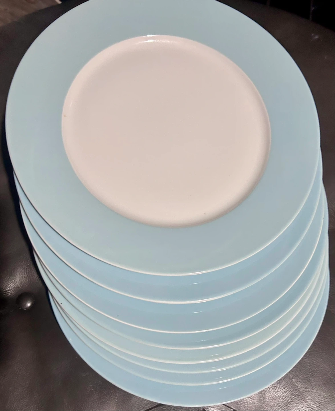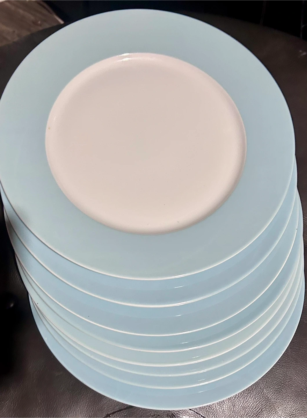 Selling a set of 8 IKEA dinner plates! They're a lovely light blue color with a white center. Designed by Susan Pryke and made in Turkey. 12.5” diameter. Sturdy and undamaged.