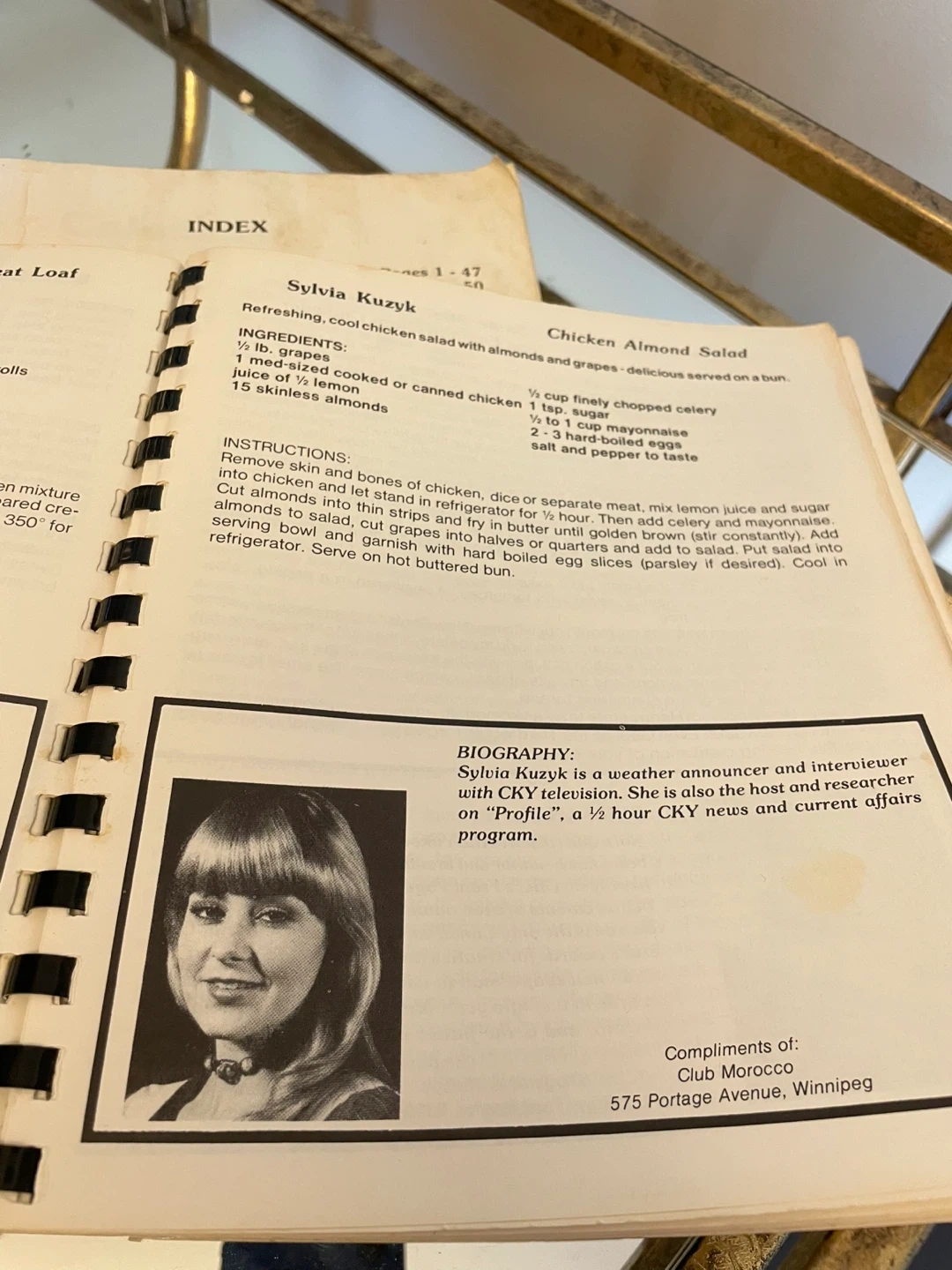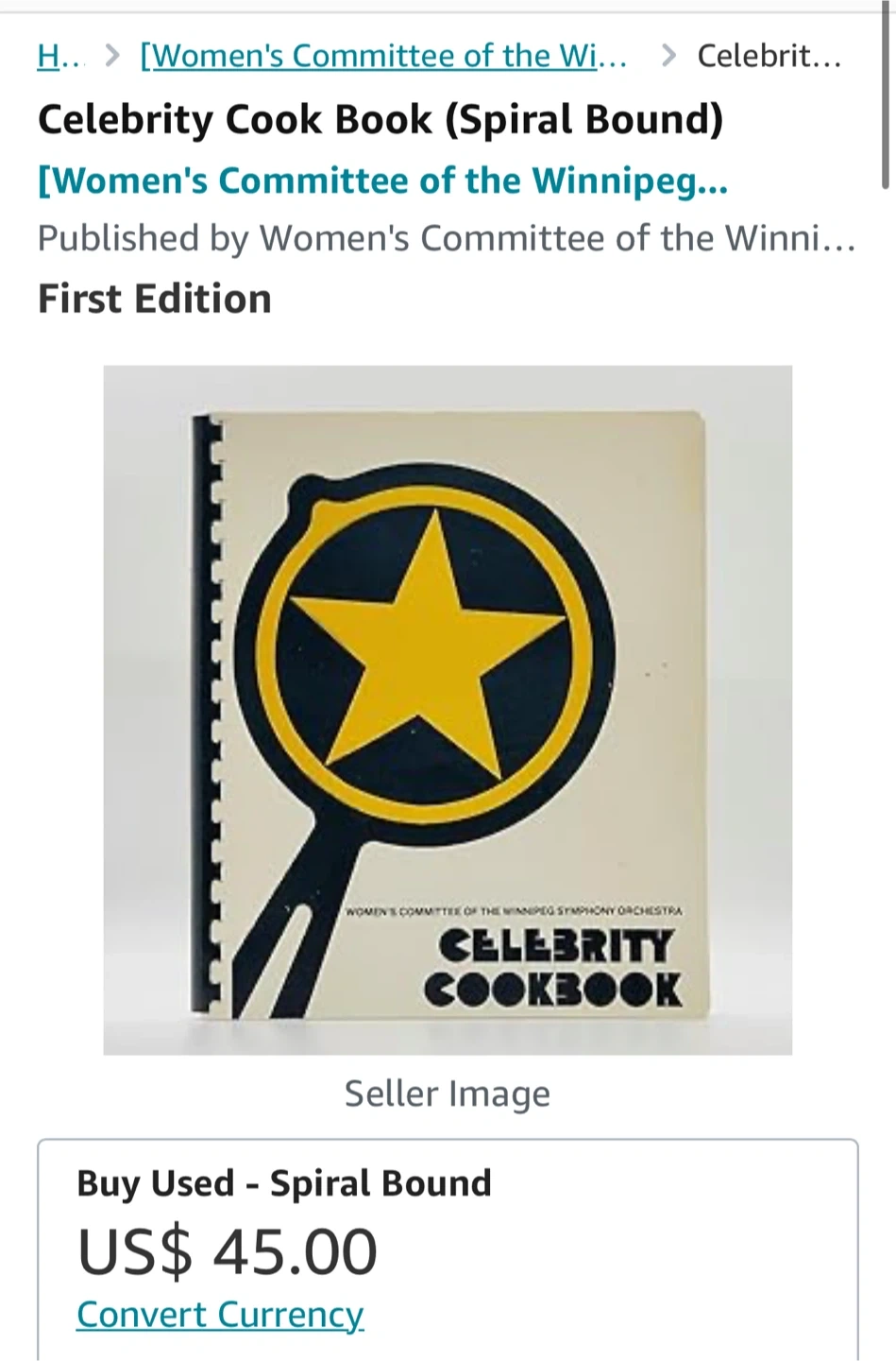 Celebrity Cook Book by the Women's Committee of the Winnipeg Symphony Orchestra. Spiral bound edition with celebrity recipes.