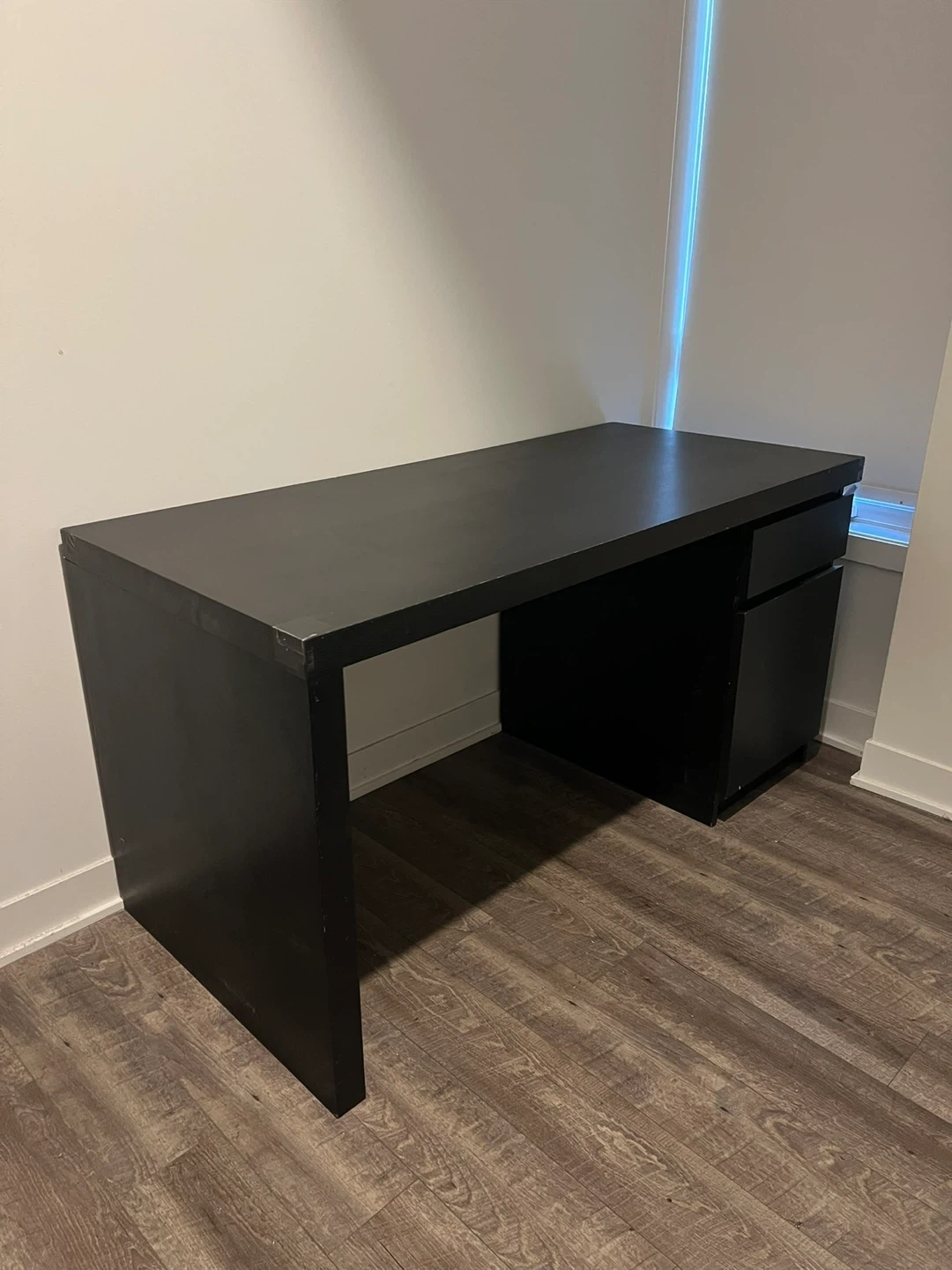 Selling a black desk that's perfect for a home office or study space! It comes with drawers for storage, helping you keep your workspace tidy and organized. It's in good condition and ready for a new home.