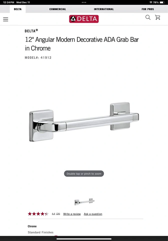 I have two of these brand new still in original packaging. Cash only pick up. Total price for 2 is $350.00. No low balling offers will be entertained. Specifications Dimensions 21.5 In. X 3.5 In. X 4.0 In. Material Metal Model Number 41912 Finish Chrome Finish Country of Origin China ITEM#: 28326700 Delta BathSafety: 36" Angular Modern Decorative ADA Grab Bar