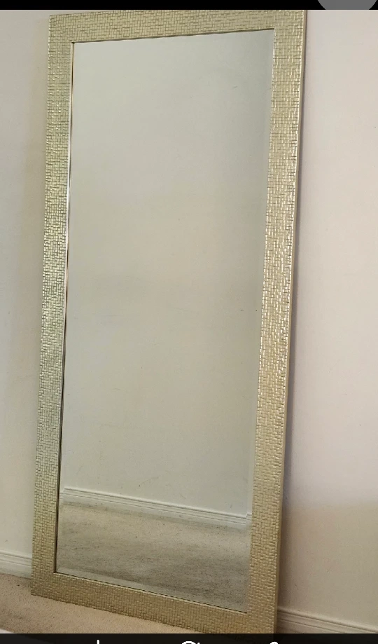Selling a full-length mirror with a decorative mosaic frame. It's in great shape and ready to brighten up any room! The frame adds a touch of elegance and style to a simple design. Perfect for checking out your outfit or adding depth to a space